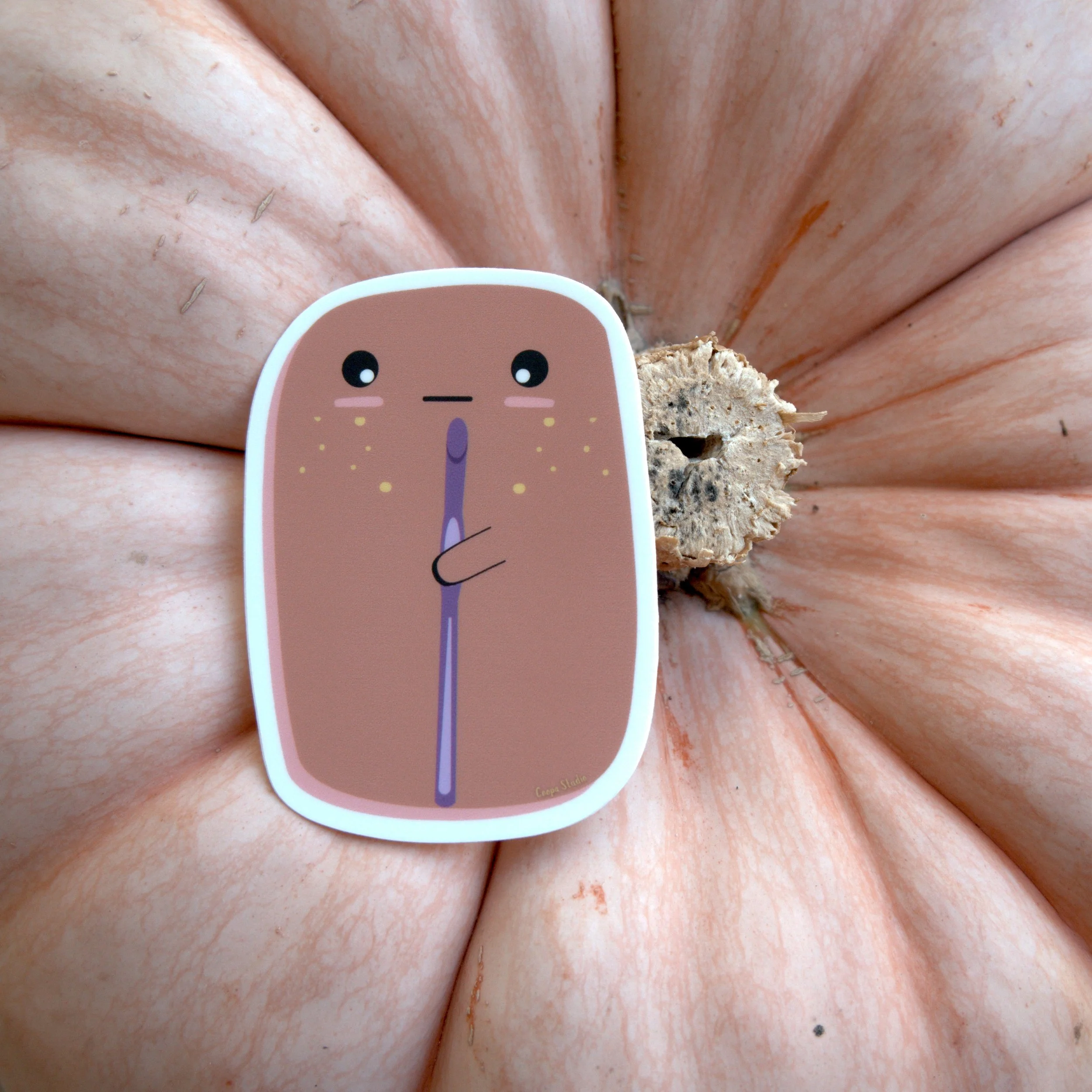 This charming potato features a friendly face, complete with cute freckles and rosy cheeks, all while clutching a colorful crochet hook. Standing 3" tall and only 2.19" wide, he's perfect for crafters and potato lovers alike. This sticker will add a quirky touch to your notebooks, laptops, or water bottles. Its playful design makes it a choice addition to any collection. Show off your love for crochet and all things cute with this irresistible potato sticker! Grab yours today while supplies last!